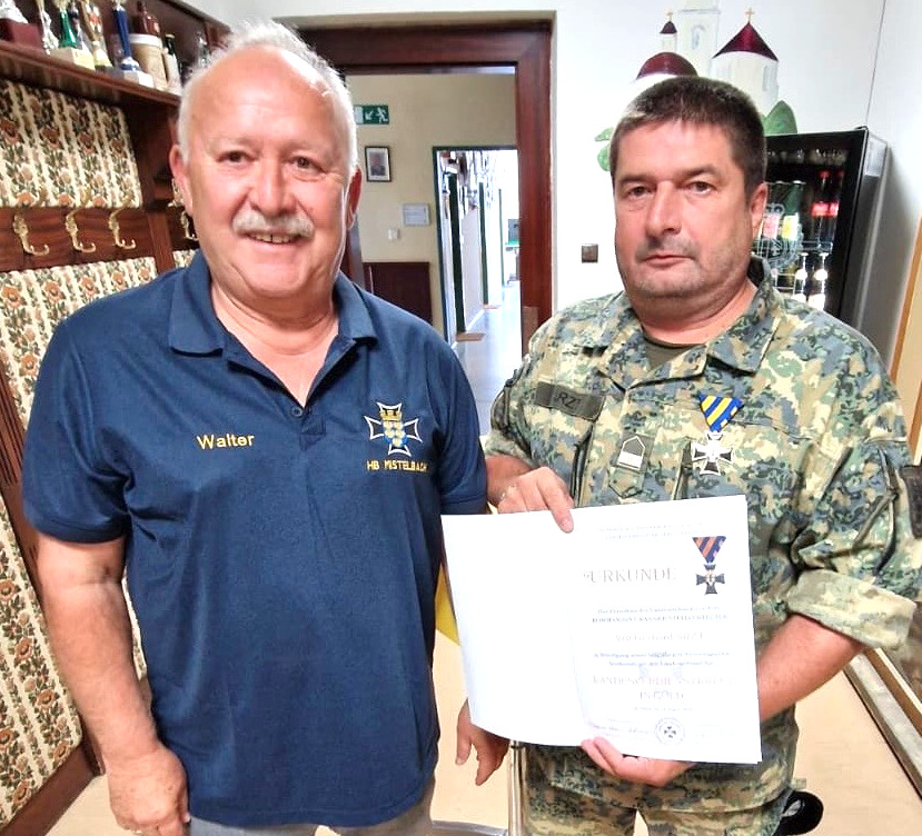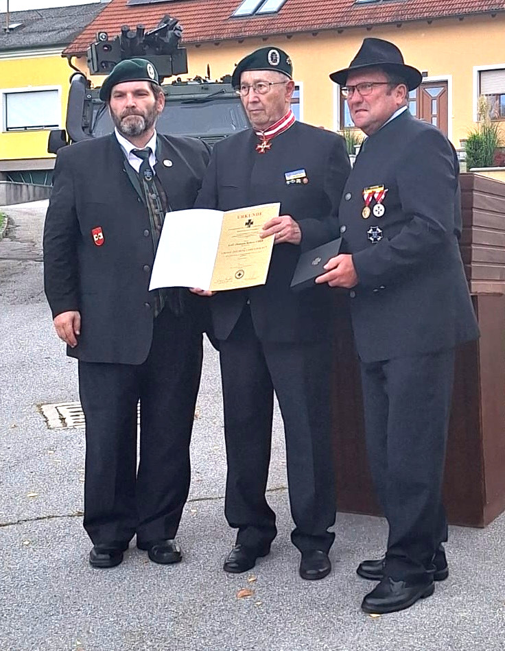 Der Herbst war für zwei unserer Kameraden ein ganz besonderer. So wurde Kamerad Gerhard Arzt in Würdigung seiner langjährigen, hervorragenden Verdienste um den Landesverband das Landesverdienstkreuz in Gold verliehen. Kamerad Robert Eder erhielt vom Schwarzen Kreuz das Große Goldene Ehrenzeichen und somit die höchste Auszeichnung, welche das Schwarze Kreuz zu vergeben hat. Wir gratulieren beiden recht herzlich.