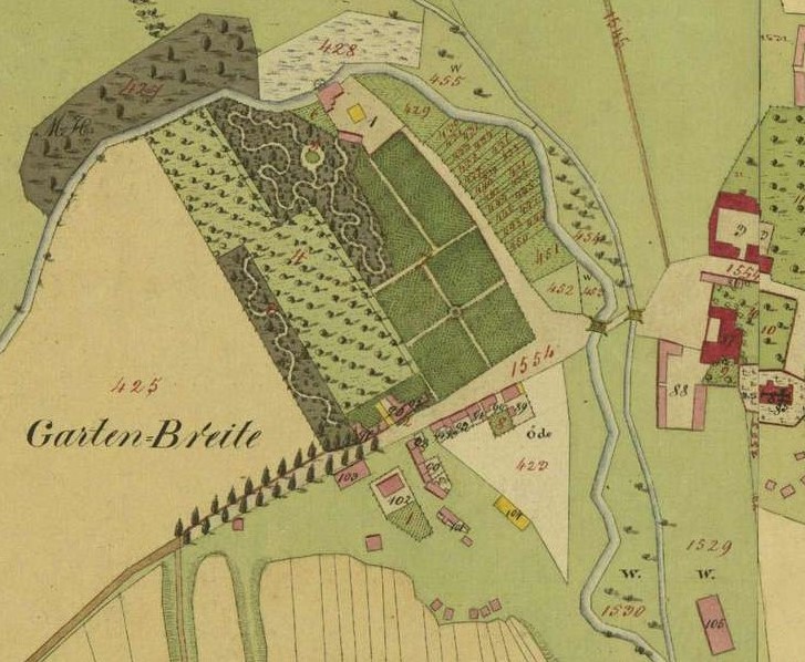 Frohnleichnamstage Nachmittag um zwey Uhr ein so strenges Gewitter, daß, obwohl nur ein Theil Hauskirchen berührte, und der größte Theil sich über den Steinberg mit einem Wolkenbruch sich entlud, daß die Gasse gegen Prinzendorf/:Matzleinsdorf genannt:/vom Wasser, das vom Steinberge im Alten Stadtwege hereinkam, ganz unter Wasser gesetzt wurde. …“